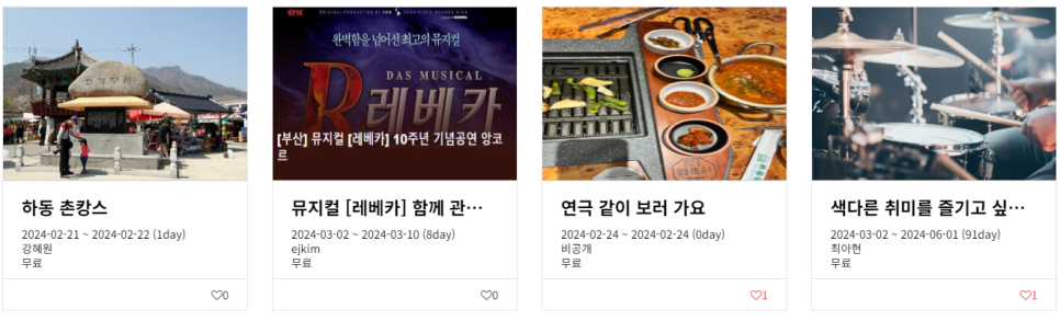 테마여행/모임 시스템을 만들었습니다.
